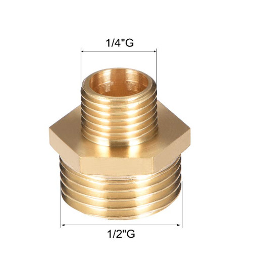 · Product Name : Hex Nipple ; Nipple for connecting two female threaded pipes ; Thread Size : 1/4" to 1/2" G Male Pipe