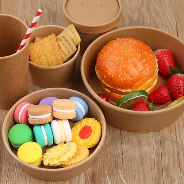 Beverage Food Catering 28oz Wholesale Kraft Paper Bowl Light Food Salad Bowl Thickened Disposable Paper Bowl Round