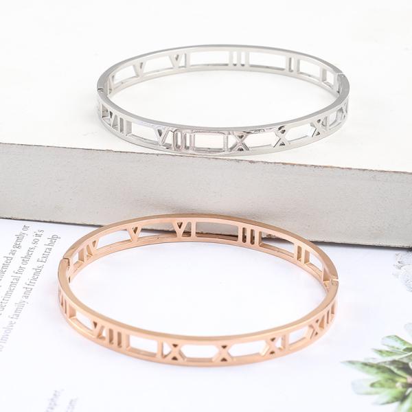 Stainless Steel Hollowed out Alphabet Bracelet Female 18K gold Roman Buckle Bracelet bracelet jewelry accessories