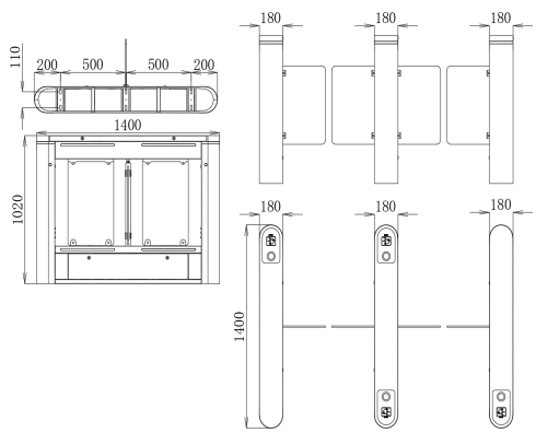 | Technical Parameters | ◆Chassis Material: Austenitic stainless steel SUS304 ◆Internal Structure: Steel Frame Construction/Standard Stainless Steel Housing ◆Work Voltage: AC220V±10V ◆Driving Motor: DC brushless motor(24~36VDC) ◆Movement Structure: Horizontal helical gear anti-collision movement, clutch anti-collision device (optional) (patented product); ◆Normal Work Life: Continuous opening and closing for more than 5 million times ◆Infrared Sensors: 6 pairs ◆Working Environment Temperature: -35℃~75℃ ◆Relative Humidity: 0~90% (No condensation) ◆Communication Interface: RS232 serial port ◆Communication Protocol: MODBUS protocol ◆Working Speed of the Gate: ≤30 persons/min (The memory mode can be turned on) ◆Passing Time: passing time by swiping card: 10S (If no one passes within 10S: the gate will automatically close, and the time can be adjusted according to needs) | |||