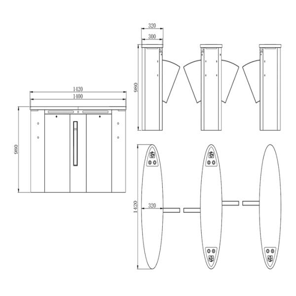 Product Specifications of Oval Wing Gate Turnstile <TDH-Y306>