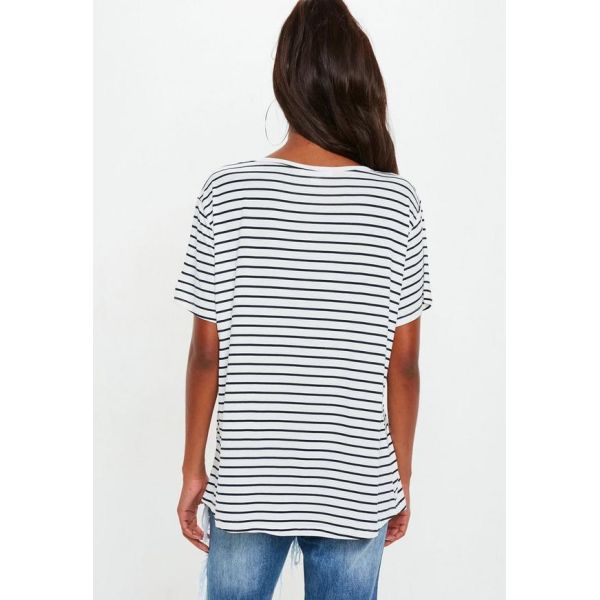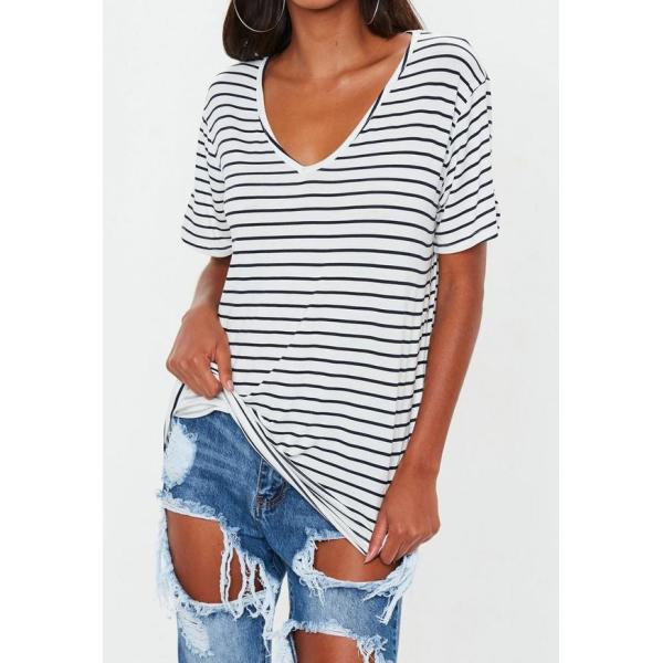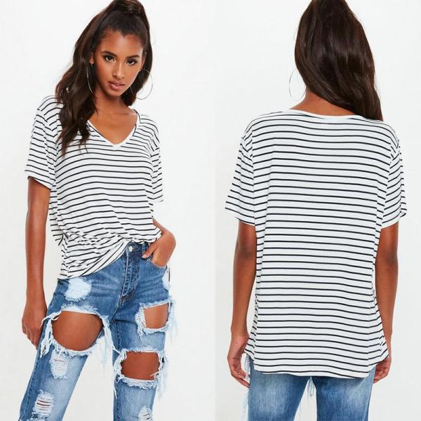 ![]() | Title | White and Navy Striped V Neck Boyfriend Clothing T Shirt Women |
