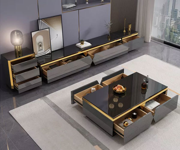 Stainless Steel Gold Coffee Table Italian Luxury Design Marble Top