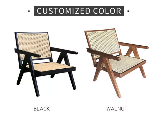Black Solid Wood And Rattan Back Armchair Living Room Balcony Lounge Chair