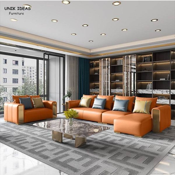 2 . Sectional leather sofa set upholstered in microfiber leather: we also supply the sofa upholstered in italian napa leather,microfiber leather and velvet.