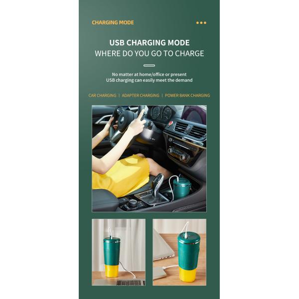 Jiashi USB rechargeable portable juicer. The gospel of the lazy, double-click to start, automatic cleaning, convenient and not hurting hands. Long-lasting battery life, 15 cups of juice can be squeezed with a full charge. USB charging mode, portable, where to go, where to charge. High borosilicate glass body, safe to use for mothers and babies. Automatically cut off the power when the cover is opened, the motor can be flushed, and the work indicator light allows you to keep abreast of the work dynamics.