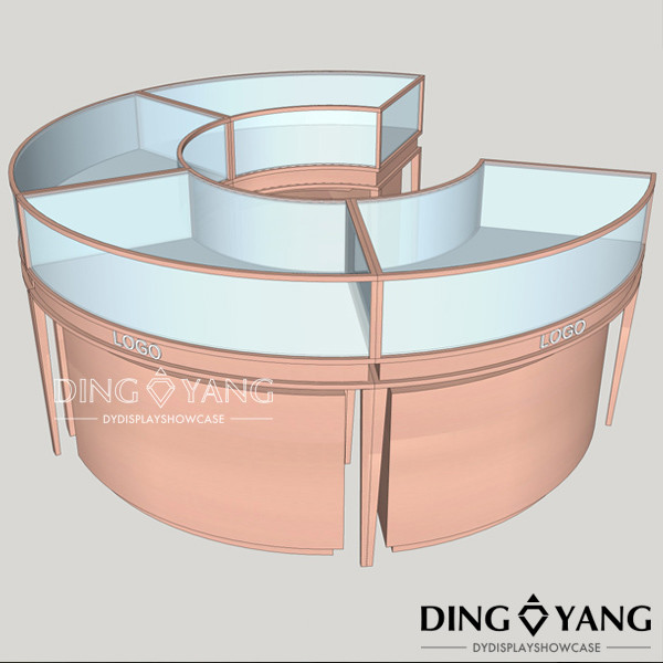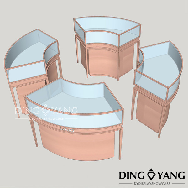 The current size of this Luxury Jewelry Showcase Counter is 1350X550X950MM, The diameter of the whole circular is about 2100~2300MM, it will include 4 pcs of curved jewelry showcase counter.For all the stainless steel parts, they are finished with Anti-Oxidation And Rust Prevention finished.Use the use highly transparent tempered glass with high-end led light,which look luxury. Beside custom with your company logo in front of the metal glass jewelry counter can make your jewelry more popular. We are the jewelry showcase counter factory in GuangZhou China, we offer jewelry showcase counter design and custom service.