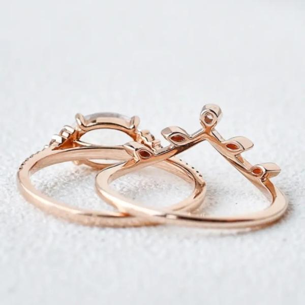 Inspired Promise Rainbow Natural Moonstone 925 Sterling Silver Lady Wedding Ring Sets