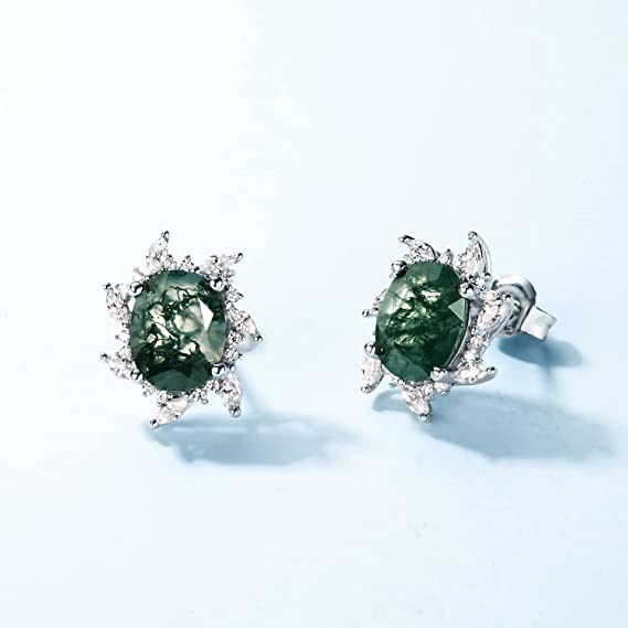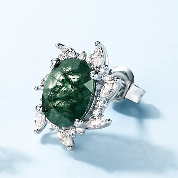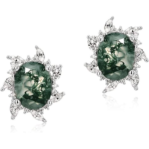 Earrings for women, Natural Moss Agate 925 Sterling Silver Stud Earrings For Women Green Gems Engagement Wedding Jewelry
