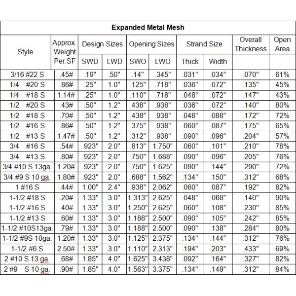 Expanded metal comes in diamond and hexagonal shapes, although hexagonal expanded metal is only available in sizes where the Long Way Dimension (LWD) is relatively big.