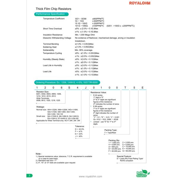 2. Product specification: 0402, 0603, 0805, 1206, 2010 and 2512