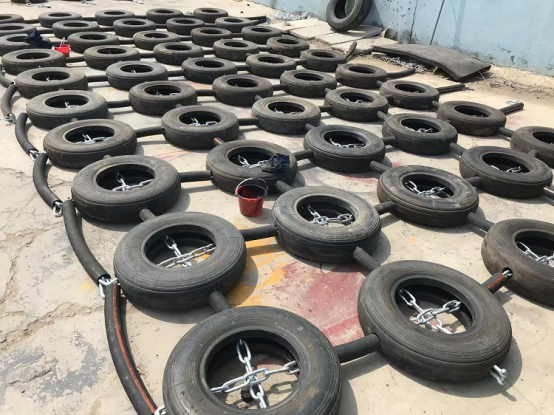 Pneumatic floating fender is mainly composed of inner rubber, synthetic-tyre-cord layer for reinforcement, outer rubber and other metal parts. All the floating fender parts are combined as a whole after high temperature vulcanization, therefore the floating pneumatic fenders have many advantages.