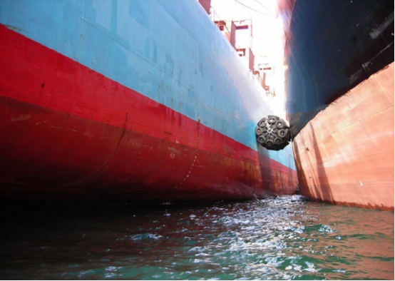 Inflatable rubber fender (by ball) is a marine anti-collision