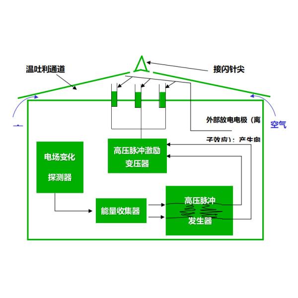 Action one: the use of thundercloud electric field, trigger device in the tip of the needle to generate high-voltage pulse, the formation of corona discharge.