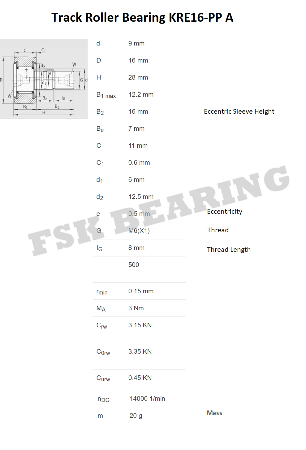 | KRE16 PPA Bearing Size: | 9 X 16 X 28mm |