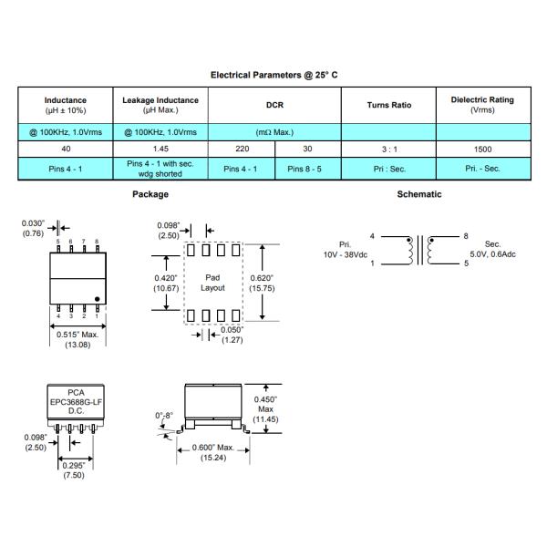 EP10 EPC3688G-LF Flyback Converter PoE Power Transformer