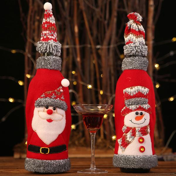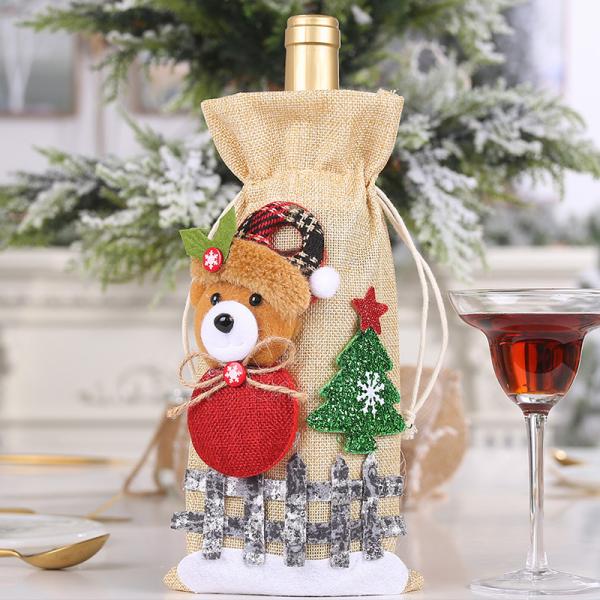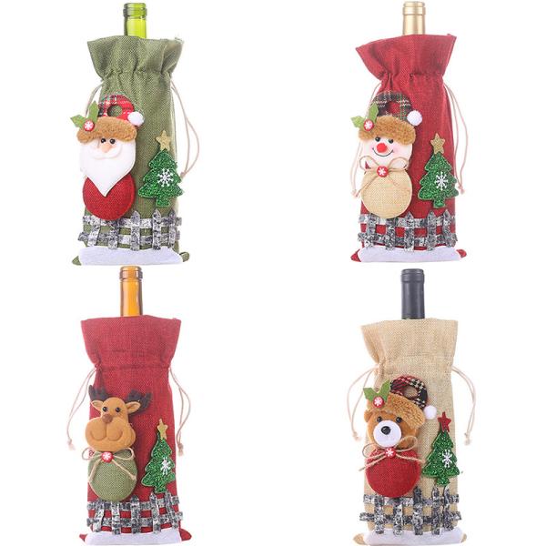 Factory OEM Christmas Wine Bottle Covers Bag for Home Santa Claus Wine Bottle Cover Snowman Stocking Gift Holders