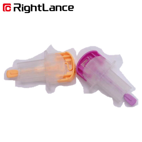 The RightLance Safety Lancets is for single use. The Needle stylet is locked after usage, in order to avoid repeated use, protecting medical personnel and patients. Activated launching design brings simple operation as well as favorable blood collection. High quality and sharp tri-bevel design can pierce and retract quickly, reducing pain feeling. Various specifications of needle head and depth which can meet different requirement of blood draw volume and usages.