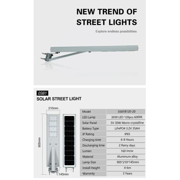 Outdoor Waterproof Garden Road Aluminum All In One LED Solar Street Light