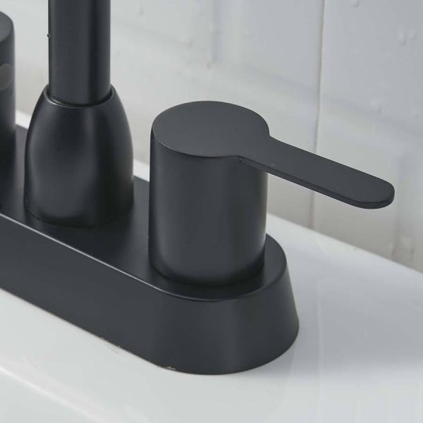The 2-Handle 4 in. Bathroom Faucet in Matte black features a sleek and contemporary design that complements a wide variety of decoration styles.This faucet is designed for three-hole installation that is simple to do yourself.This is a good example of design and technology fusing to bring you an enhanced water exerience.