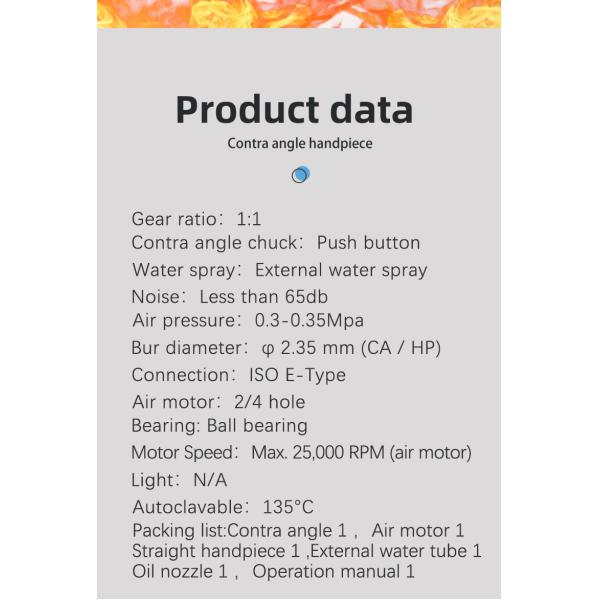 | Items: | Contra angle, air motor, straight handpiece |