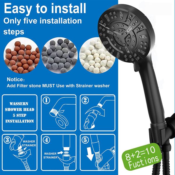 Contemporary Design This handheld shower head with ideal balance and weight in the hand, ergonomic design makes for superior comfort and ease of use.10 Spray Functions Shower head has 10 spray options. is suitable for bathing kids, washing pets and cleaning the bathroom, etc.