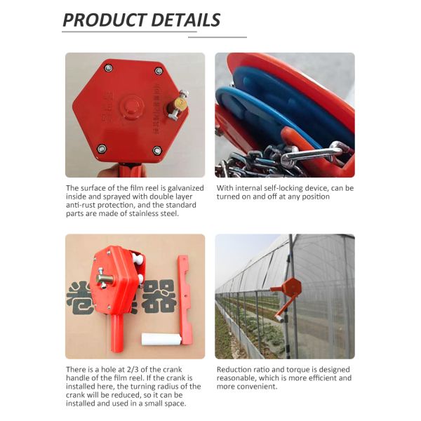 Cheap Greenhouse Manual Plastic Film Roll Up Crank Chain Film Roller For Sidewall Ventilation