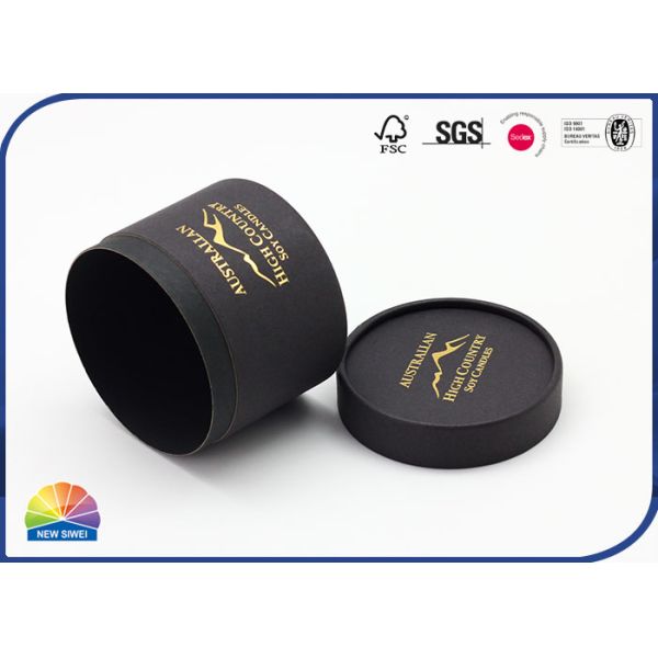 Gold Logo Eco-Friendly Black Paper Tube With Lid Candle Packaging