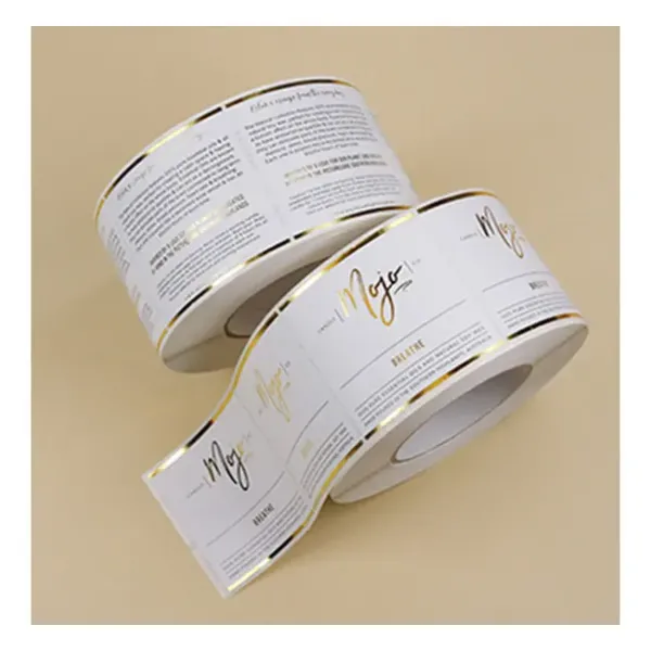 Custom luxury white black adhesive roll cosmetic bottle gold foil vinyl paper printing custom logo label sticker