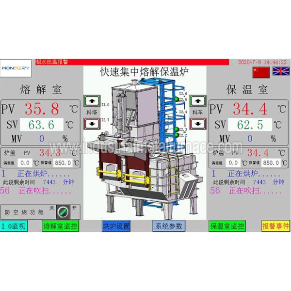 The programmable controller PLC of the aluminum scrap melting furnace interacts with the HMI for internal execution of