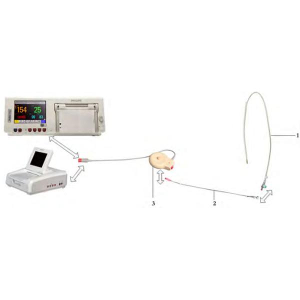 PHiliphh Reusable Koala IUP connecting cable 989803143931 M1334A for use with PHiliphh Avalon 50 Series Fetal Monitor. Use of the invasive measurements IUP and fetal DECG, use of the patient module (M2738A) and use of the Avalon CL system in domestic establishments and those connected directly to the public low-voltage supply network that supplies buildings used for domestic purposes.