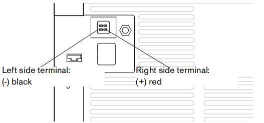 The connection to the alternating voltage is made by a power cable. The connection for the external rechargeable battery is made by an encoded connector.