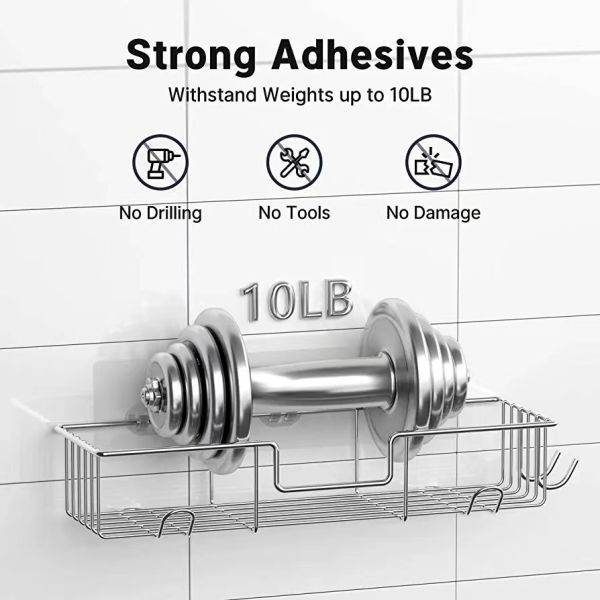 No Drilling Adhesive Rustproof Stainless Steel Shower Organizer for Bathroom