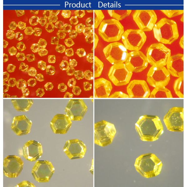 Consistent crystal color, regular shape, good transparency, high strength and great thermal stability, applied to make tools for sawing all kinds of hard stone and concrete, also suitable for geological drills.