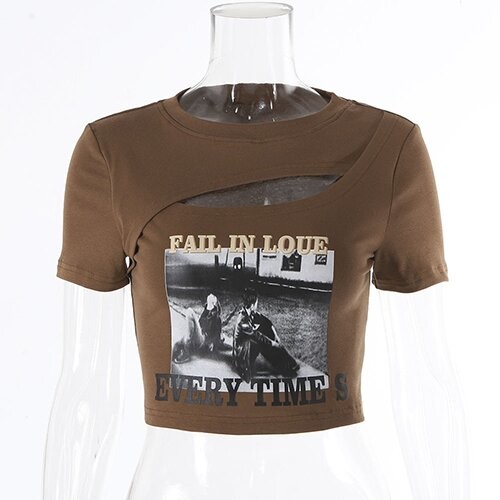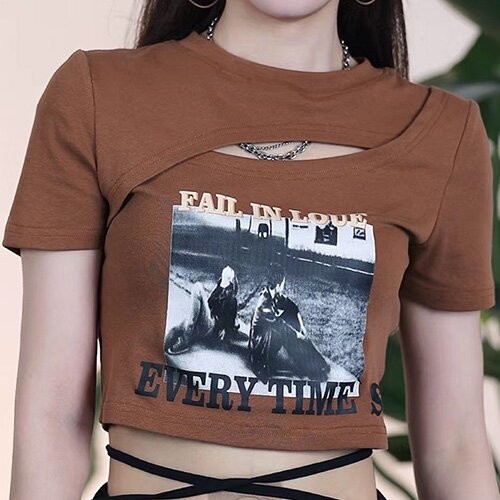 | Item Name | OEM Cross -border summer new European and American sexy female decoration T -shirts fashion printing hollowed umbilical round neck short sleeves |