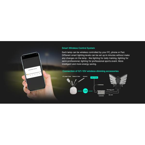 Each lamp can be wireless controlled by your PC, phone or Pad. Different smart lighting levels can be set up in minutes without make any changes on the lamp - like lighting for daily training, lighting for semi-professional, lighting for professional sports event. More intelligent and more energy saving.