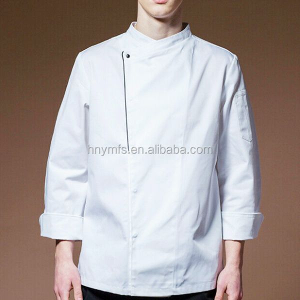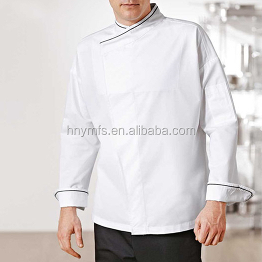 Long Sleeve Customized White Black Poly-Cotton Blend Chef Coat Chef Uniforms