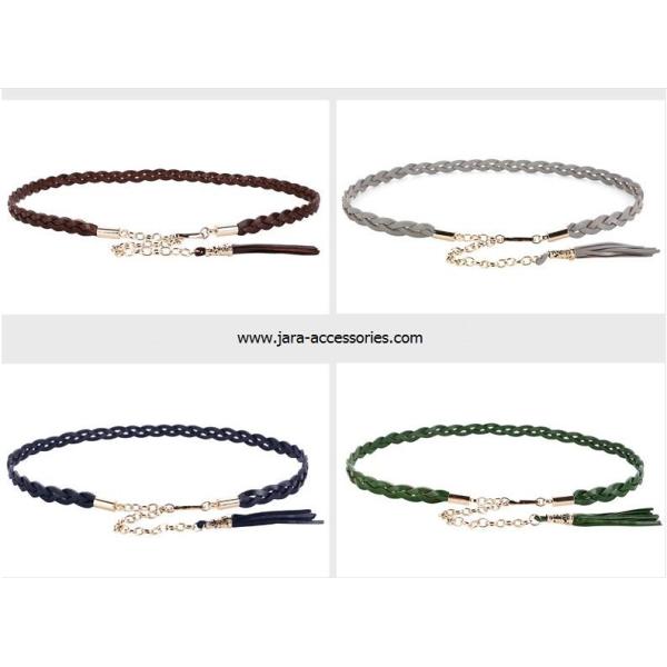 2cm PU & Metal Chain Belt , Black Womens Braided Belts With Gold Buckle