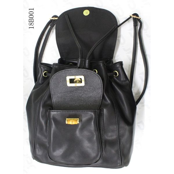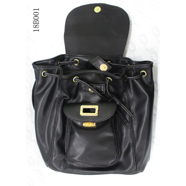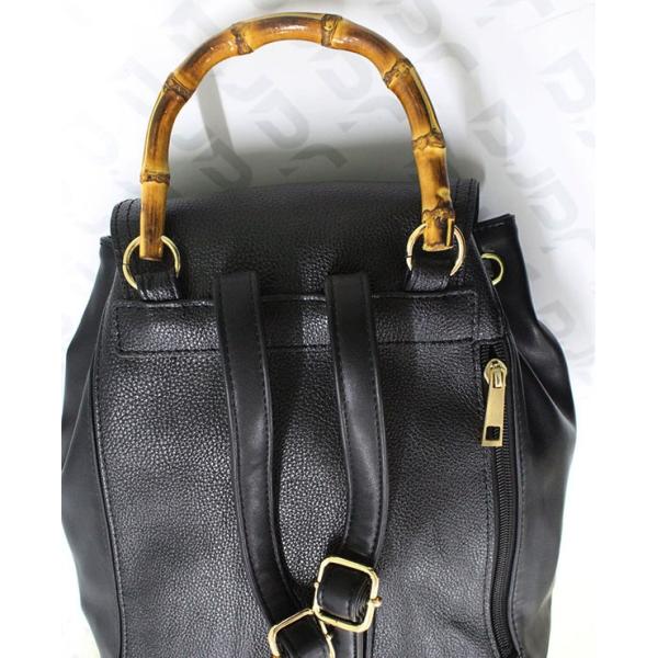 Fashion Black PU Lady Bag With Secret Pocket, Lady Mini Backpack with wood handle