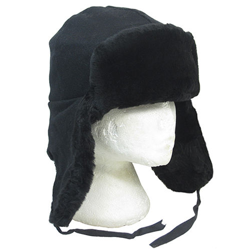 Unisex Black (Charcoal Fleece) Russian Trapper Cossack Ushanka Faux Fur Cold Winter Ski Hat For Ladies Mens