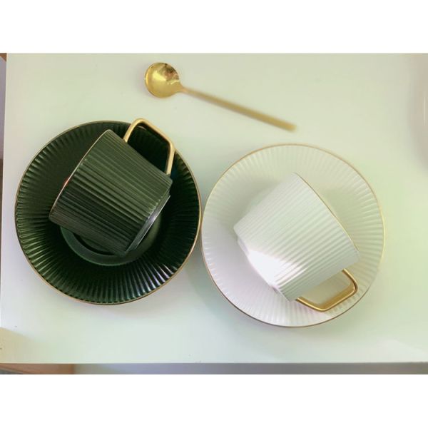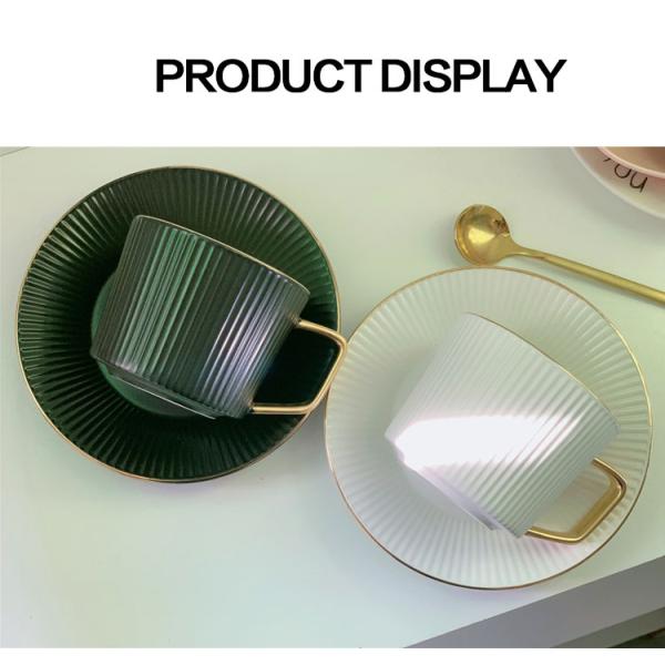 European Style Striped Ceramic Coffee Cup Afternoon Tea Set With Spoon And Saucer ceramic coffee tea cups saucers set