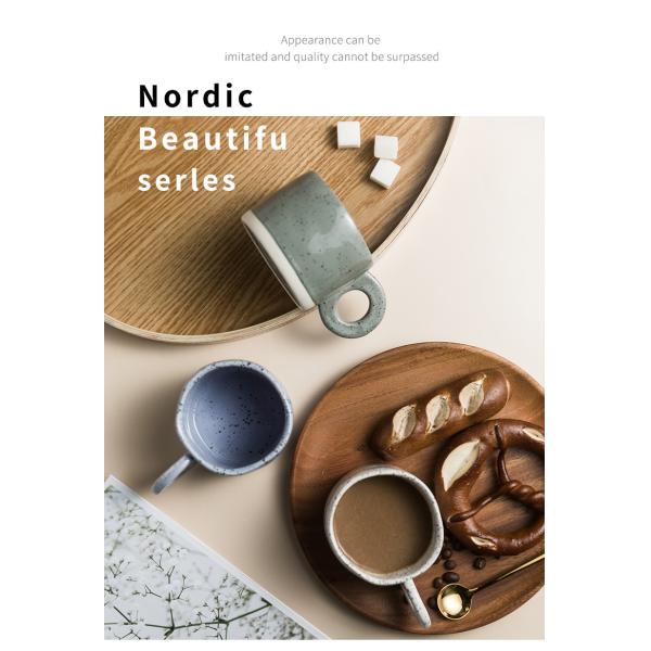 300ML Ceramic Nordic Ring Handle Coffee Mug Speckled Brief Novelty Pattern Milk Tea Cup Breakfast Milk Mug