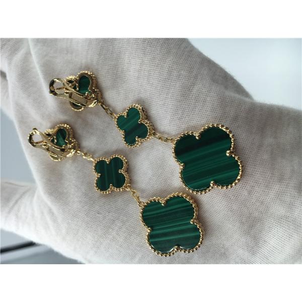 Paris Luxury Gold Brand VCA Magic Alhambra earrings 3 motifs malachite 18K yellow gold jewelry