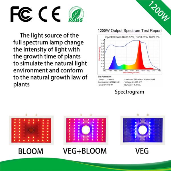 Wavelength: full spectrum B:450-460nm R:620-630nm COB:380~800nm