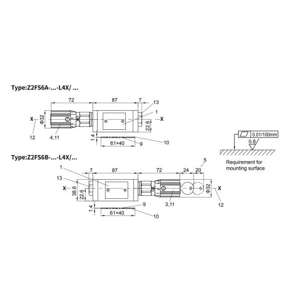 - Porting pattern to DIN 24 340 form A and ISO4401