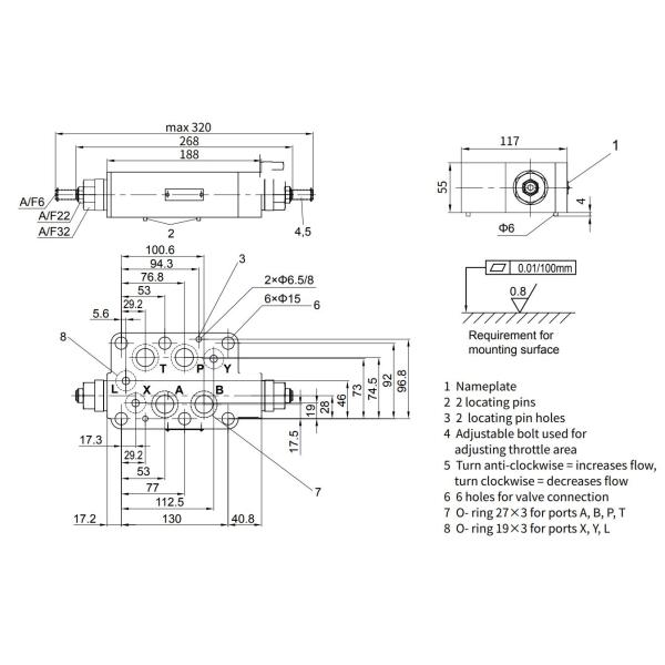 Symbols ( ① =valve side, ② = sub-plate side) size:6