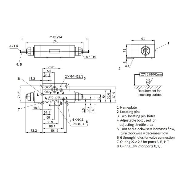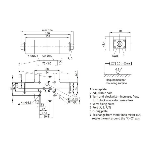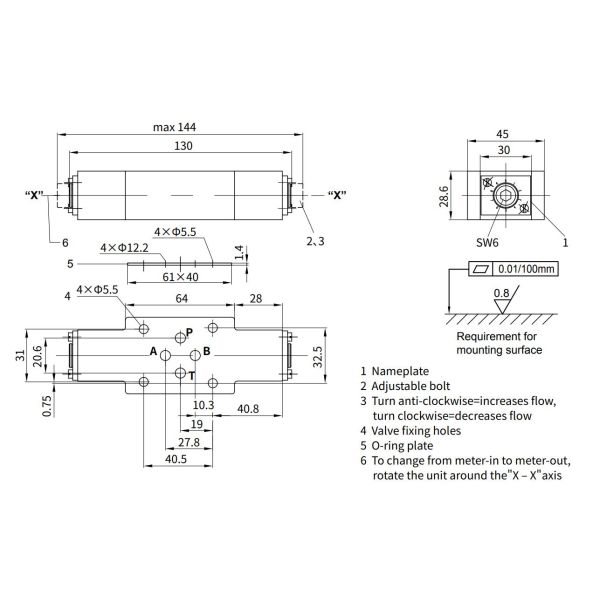 | Flow direction | One direction throttle, return through the check valve by another direction | ||||