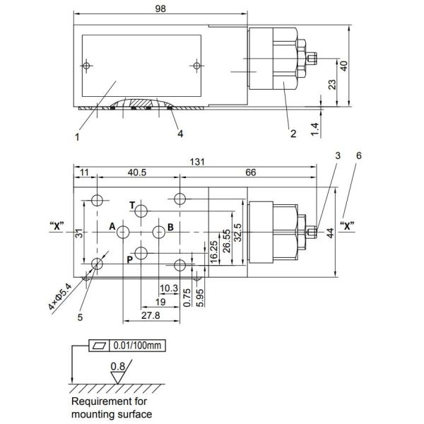 | Connection type | Indirect connection via a subplate or block, porting pattern to DIN 24 340 form A, ISO 4401 and CETOP-RP 121 H | ||