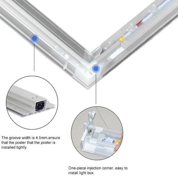 The light box is easy to install and can be quickly disassembled and assembled without the use of other tools. The light box uses built-in power supply or high-voltage light bar, which is plug-and-play, which is simpler and more convenient to install than traditional light box, reducing transportation costs.