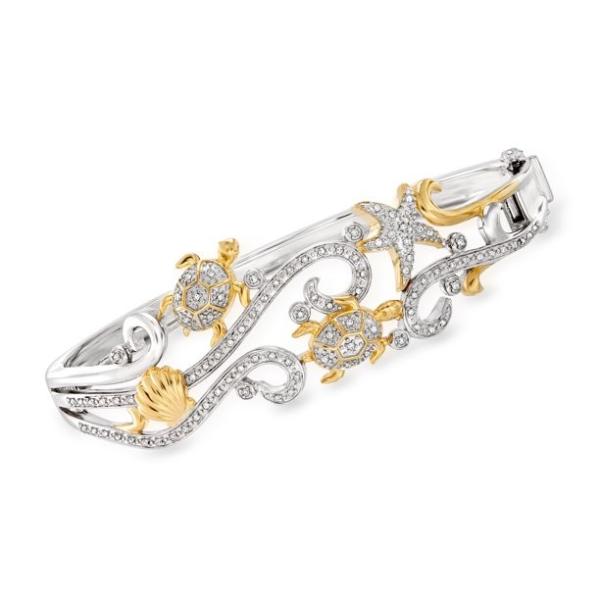 Ross Simons Sea Life Bangle Bracelet in Sterling Silver With 18kt Gold Over Sterling